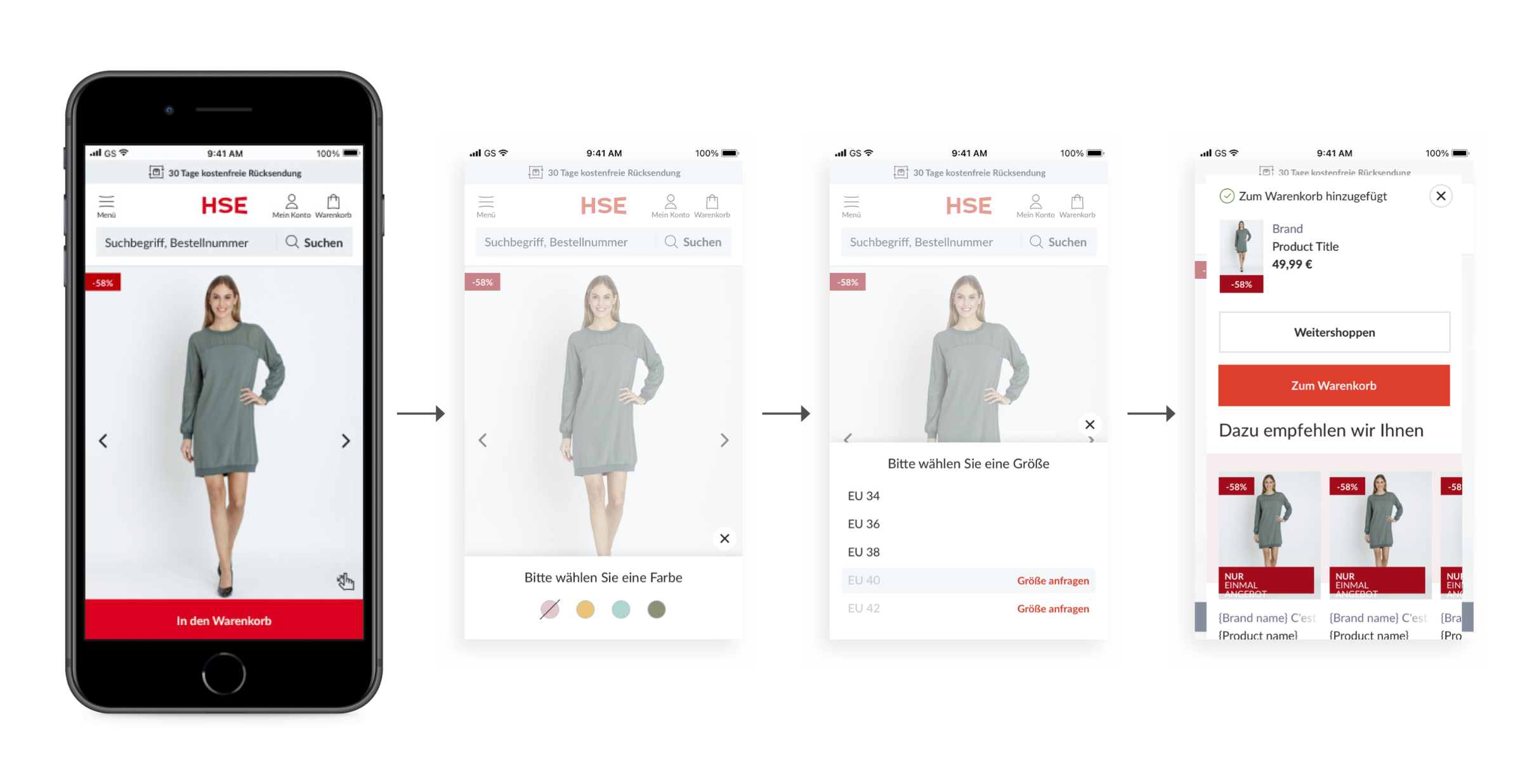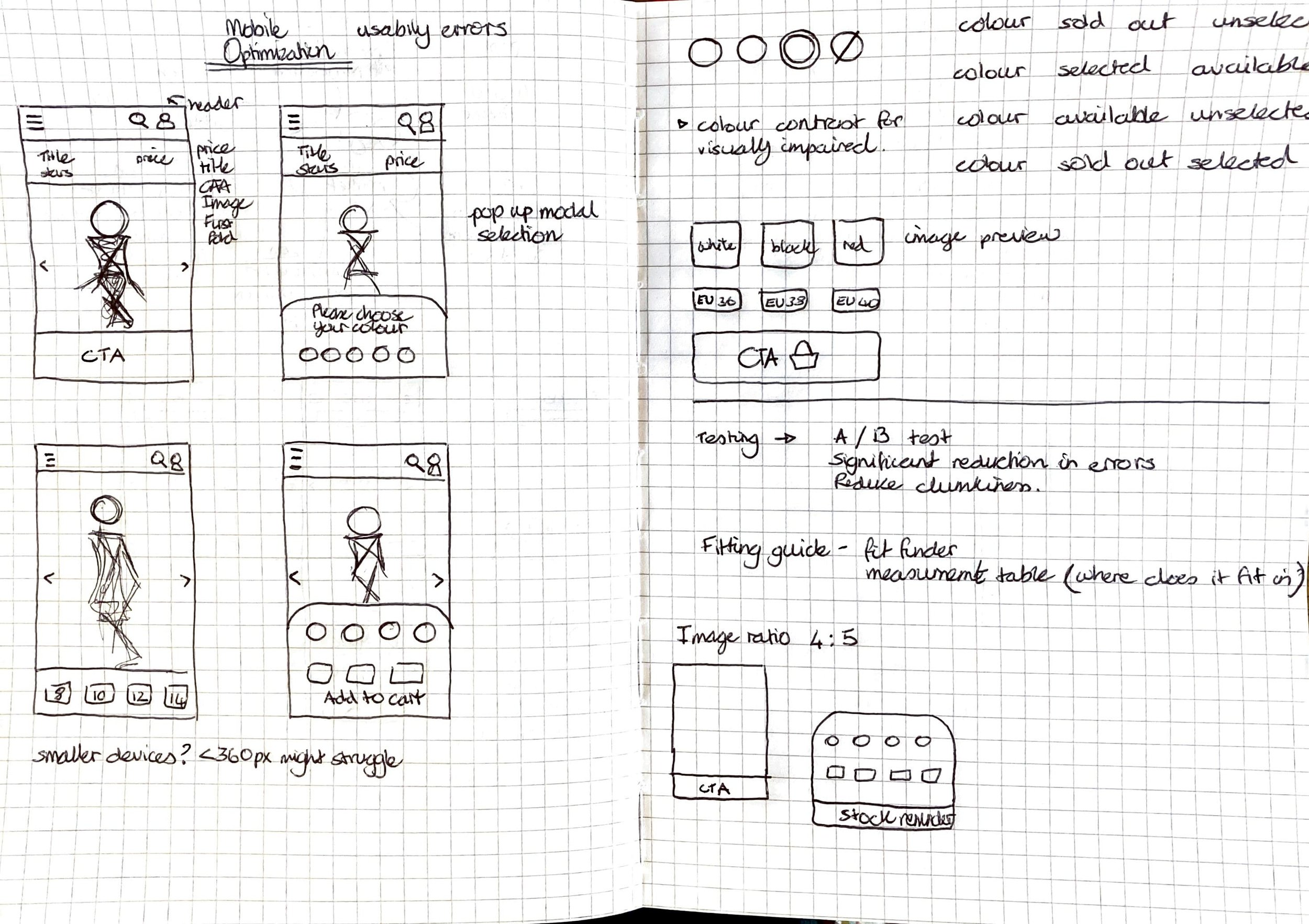 This solution would improve how users pick their desired colour and size of clothing before adding it to the basket. It was a simple action we saw most users struggle with in usability testing.