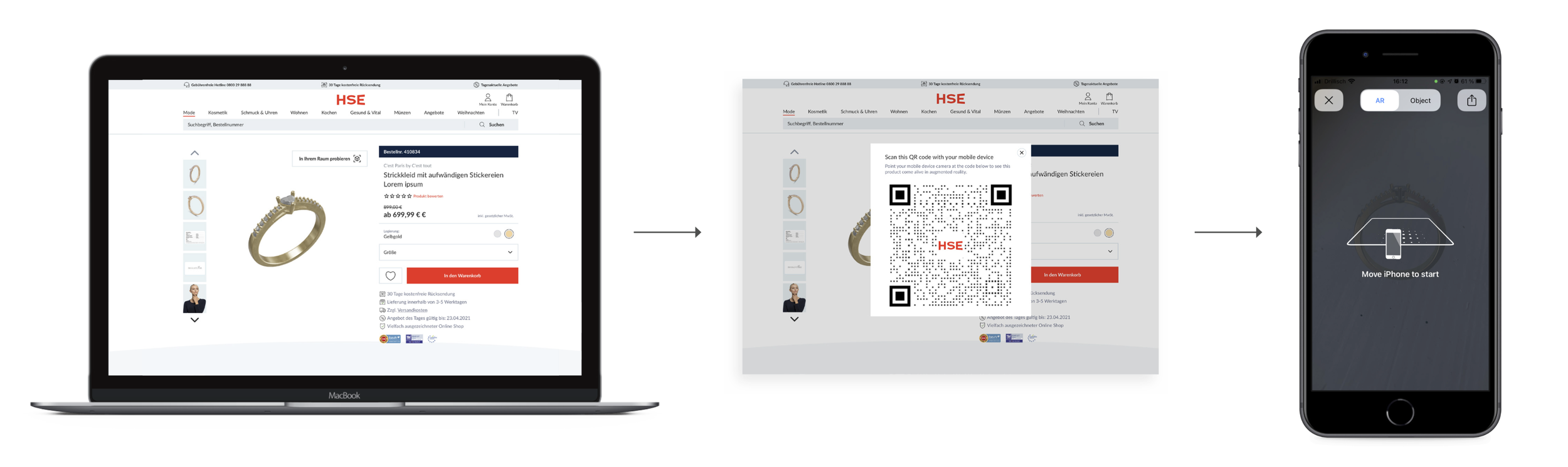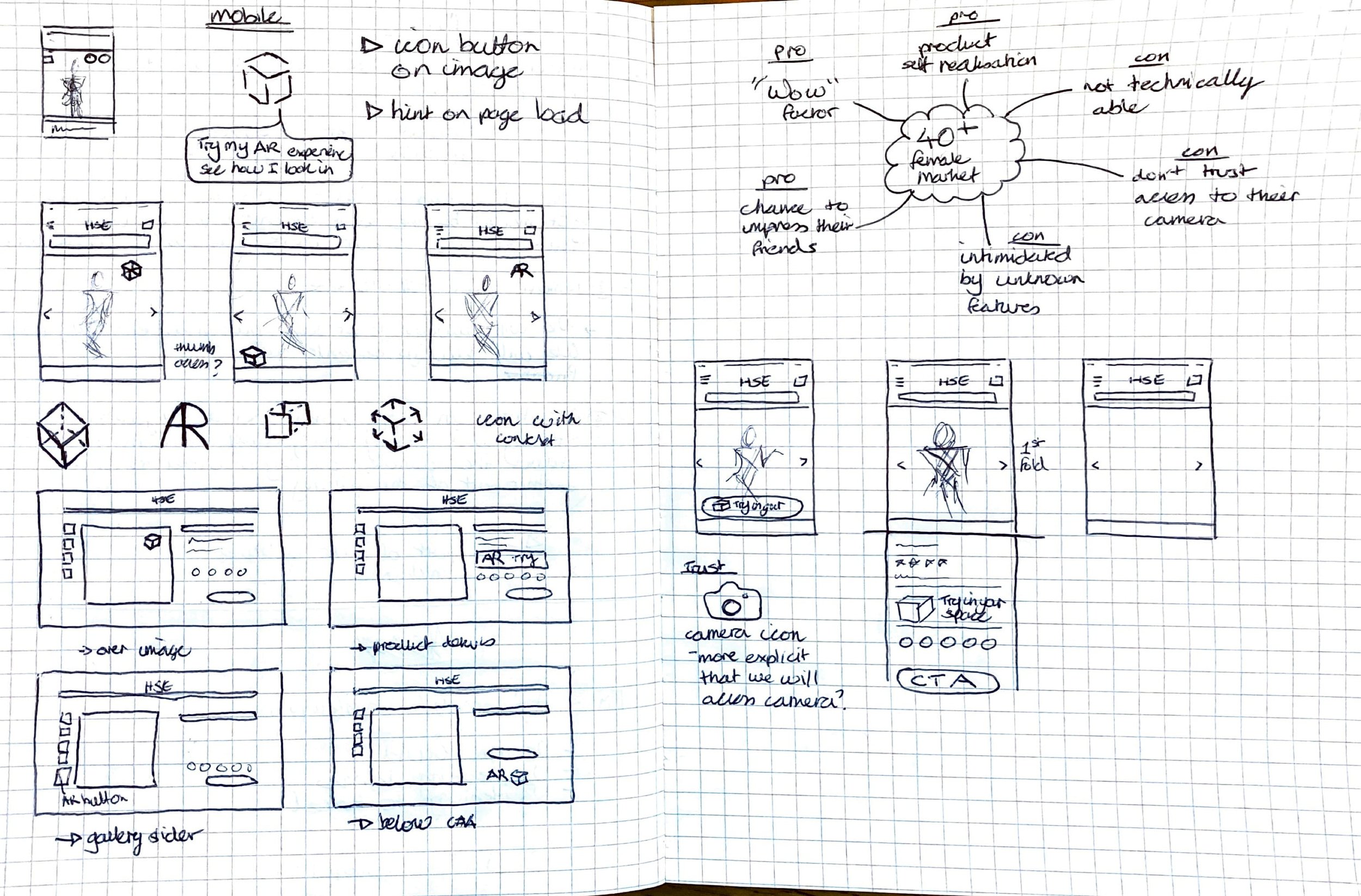 The customer base of HSE is much older and notoriously suspicious of the internet and shopping online. Over the years HSE built trust with customers and it was important they did not think the AR feature was a clickbait scam. Although the 3rd party integration was marketed as a white-label product, it soon became clear we would need to negotiate with the provider to give us more flexibility so the look and feel was clearly “HSE”.