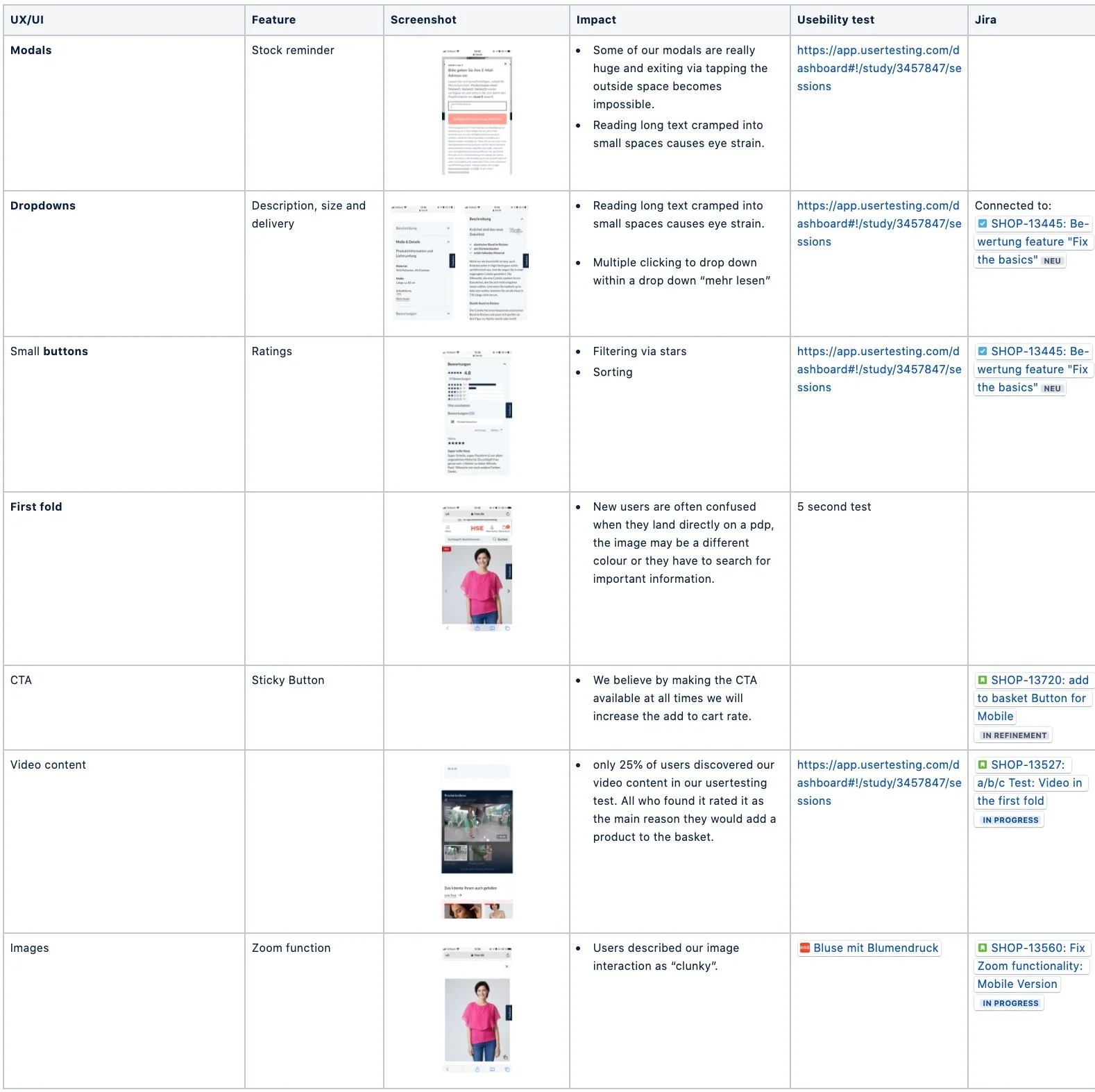 For usability tests, I used usertesting.com to gather insights and verify that my solution has been an improvement. I also analysed Hotjar Feedback and with help from the data team, I was able to monitor errors on mobile. For both solutions, we implemented an A/B test (but not at the same time or the same products) with controls to compare whether improvements had been made.